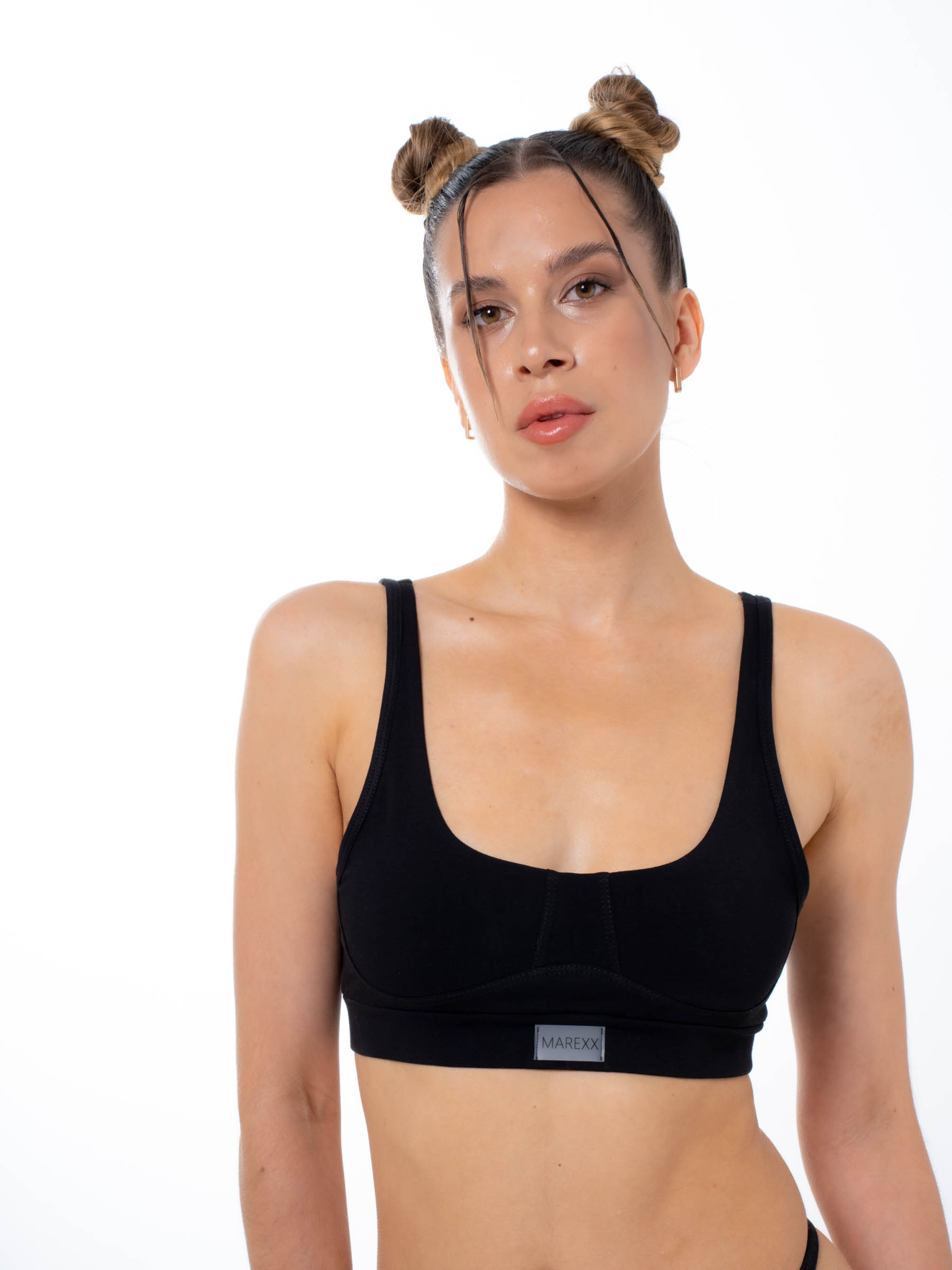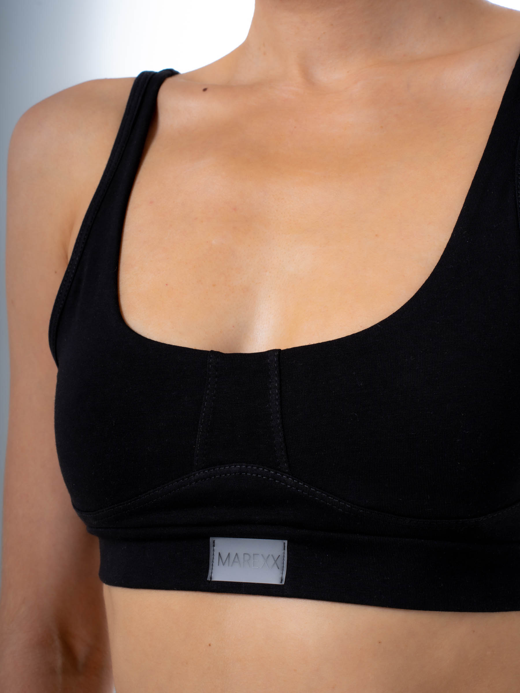 Женский черный бельевой топ от MAREXX подарит Вам удобство и комфорт на каждый день. Бельевой топик на тонких бретельках без чашек и косточек. Плотный материал и резинка снизу обеспечивают умеренную поддержку груди и придают ей красивую форму, создают легкий пуш ап эффект. Лиф на бретелях выполнен из натурального хлопка с небольшим добавлением эластана. Мягкая натуральная ткань нежно прикасается к коже, подарит самые приятные тактильные ощущения. Хлопковый бра отлично пропускает воздух, позволяет коже дышать, плоские швы не натирают кожу.