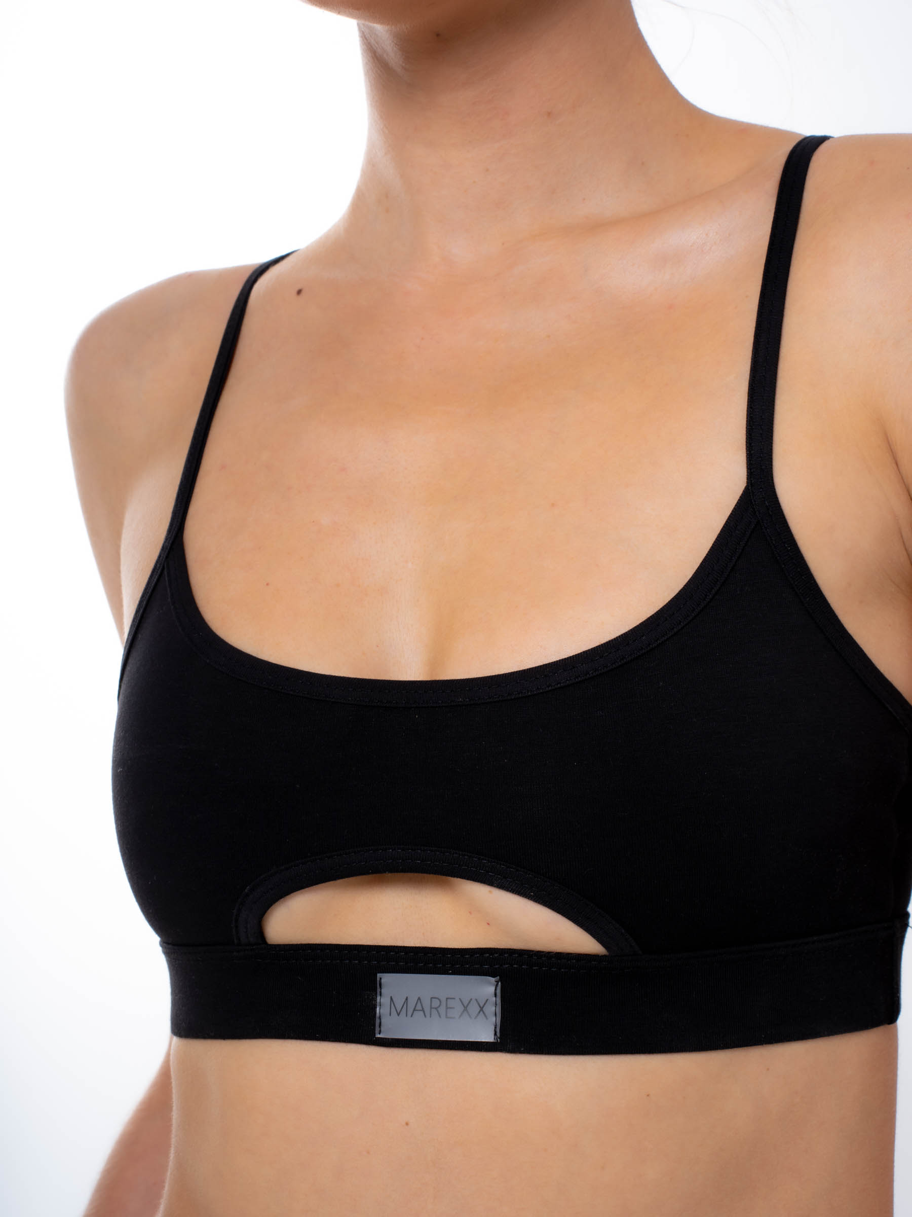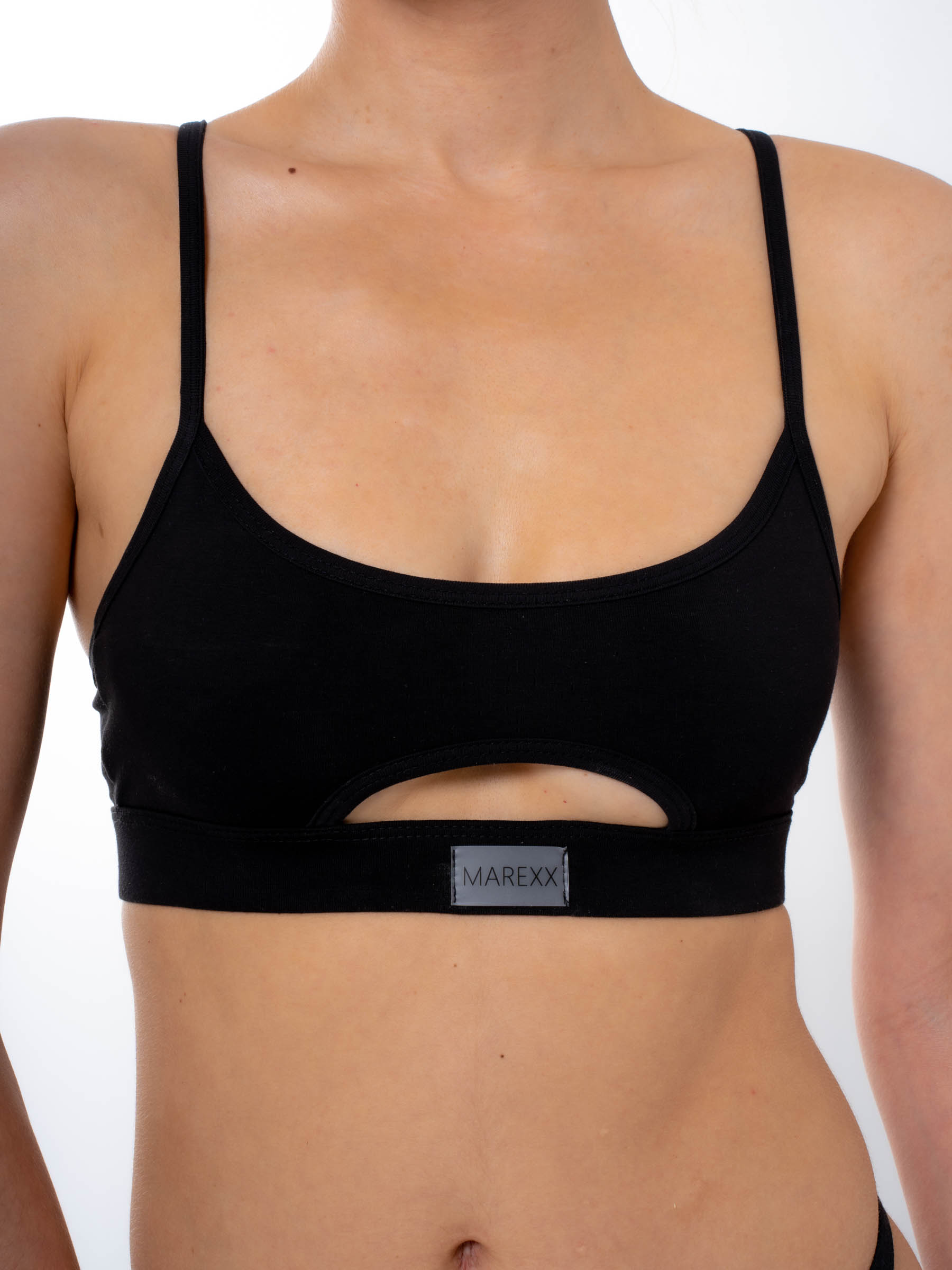 Женский черный бельевой топ от MAREXX подарит Вам удобство и комфорт на каждый день. Бельевой топик на тонких бретельках без чашек и косточек. Плотный материал и резинка снизу обеспечивают умеренную поддержку груди и придают ей красивую форму, создают легкий пуш ап эффект. Лиф на бретелях выполнен из натурального хлопка с небольшим добавлением эластана. Мягкая натуральная ткань нежно прикасается к коже, подарит самые приятные тактильные ощущения. Хлопковый бра отлично пропускает воздух, позволяет коже дышать, плоские швы не натирают кожу.